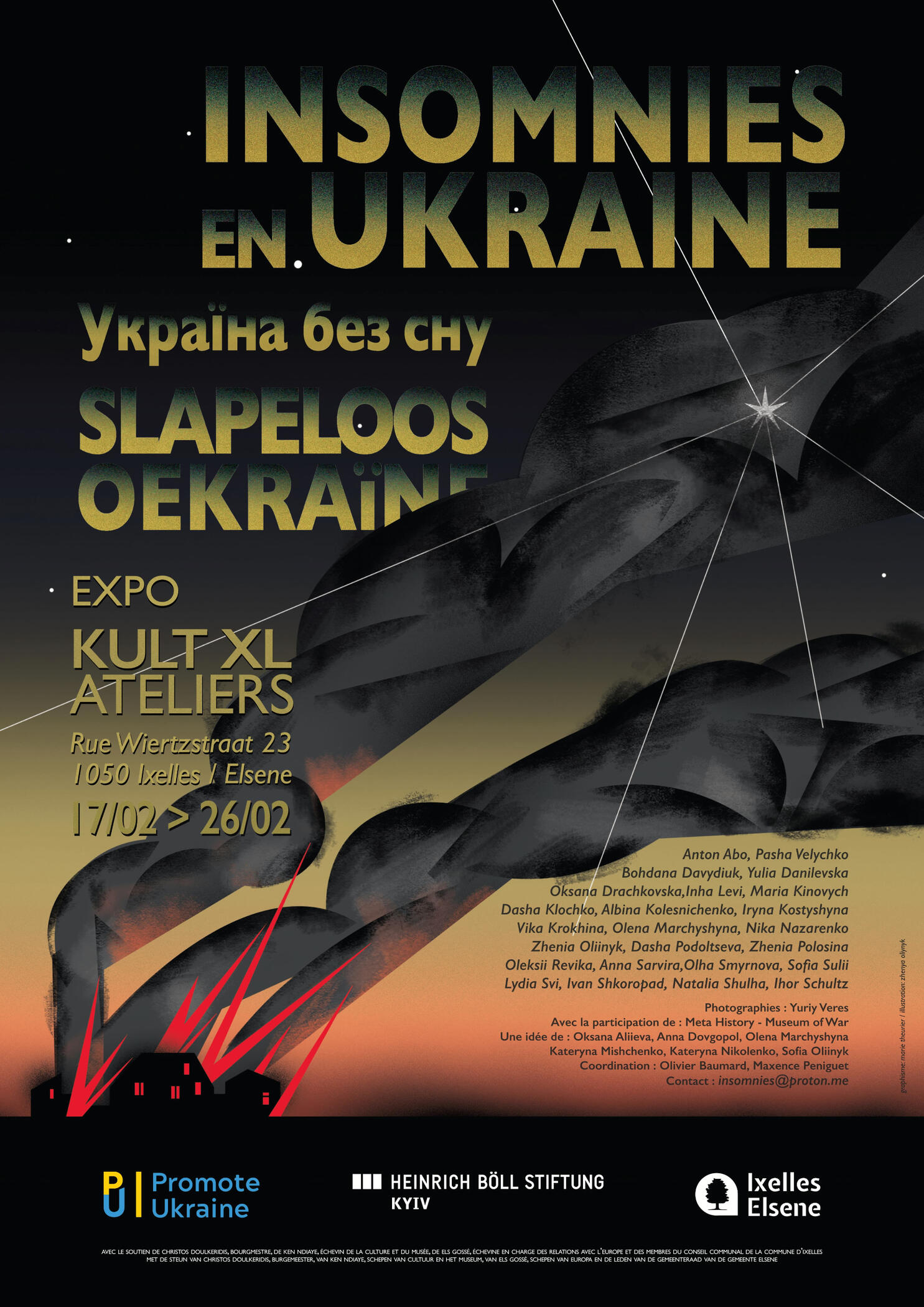 L’exposition “Insomnies en Ukraine” nous replonge dans ce conflit qui dure depuis 9 ans. Les œuvres sélectionnées retracent l'angoisse vécue par la population civile, la métamorphose de la nation ukrainienne et l'héroïsme quotidien de femmes, d’hommes et d’enfants qui se battent jour et nuit pour leurs vies, mais aussi pour sauvegarder leurs valeurs européennes.